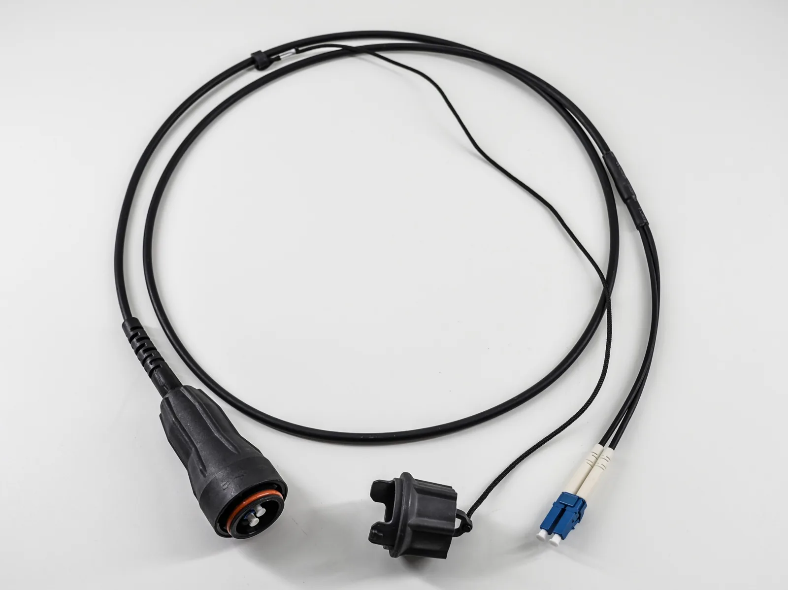 LC duplex single mode fiber connector terminated on FullAXS CPRI patch cord for 5G FTTA applications